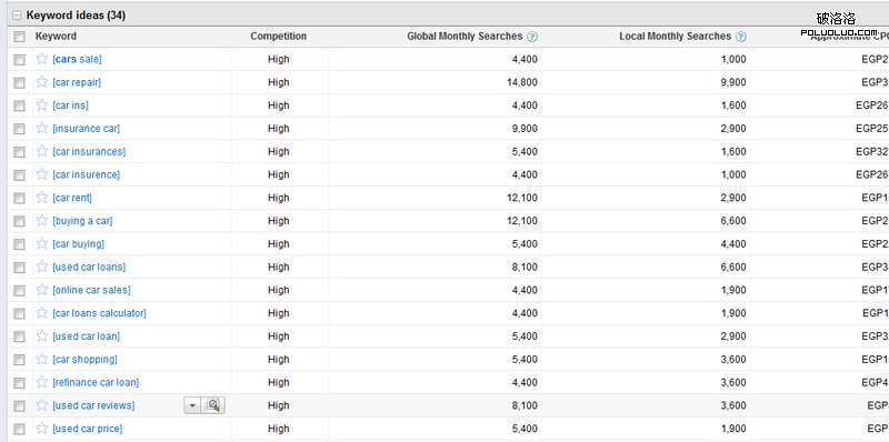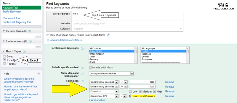 在Google Keywords Tool上還需要做一些設置: