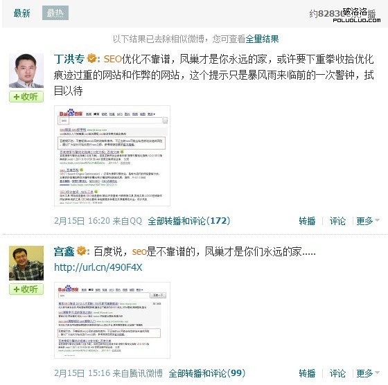 最熱廣播指的就是轉播和評論數最多的廣播。下圖為搜索“seo”,最熱廣播的排名截圖: