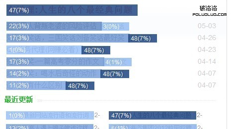 上面清楚的寫著鏈接的點擊率是百分之幾,這個功能個人覺得是非常不錯的,比原先的在度熱力圖還要強大。以前有了百度熱力圖的時候我們只知道用戶點了哪些鏈接或者沒有點擊哪些鏈接,卻不能知道實際的數據。現在鏈接點擊圖就能很直觀的得出具體數據了。我們就會知道原來用戶對哪些內容感興趣和對哪些內容不感興趣,一目了然。當我們得到這些數據以後,我們就可以利用這些數據調整網站首頁的內容布局(當然不只是首頁,還可以監控一些我們認為的重要頁面,只要你有時間看的過來)。盡量的去找一些用戶喜歡的內容從而留住用戶。