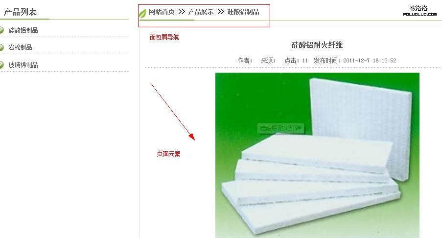 網站設計中面包屑導航和頁面元素展示