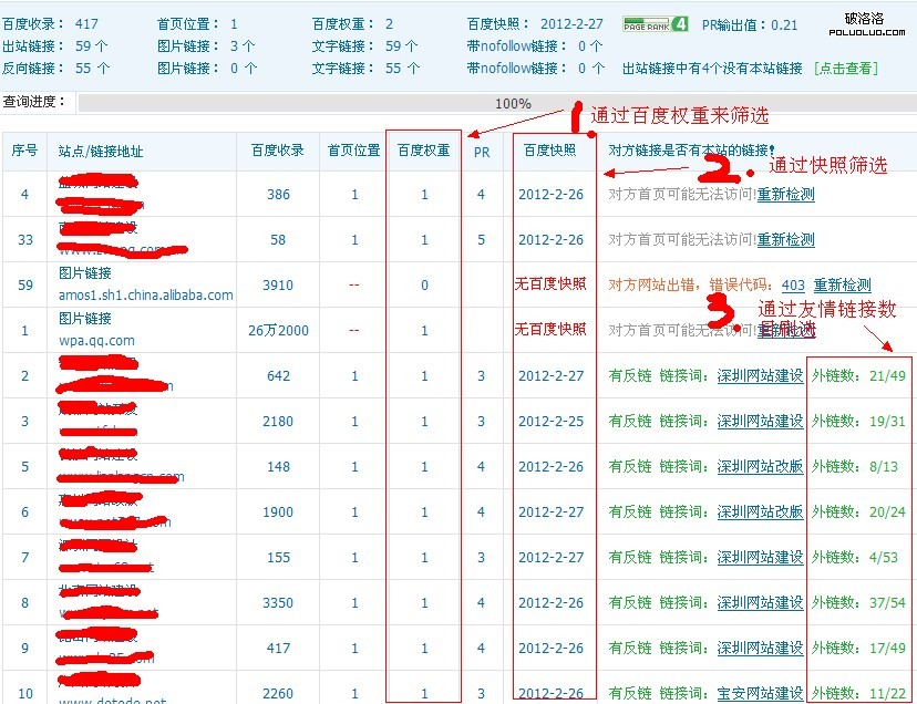 3、通過友情鏈接數目篩選。由於網站權重的可傳遞性,一個網站的導出鏈越多,那麼我們和其做友鏈獲得的權重也就越低。一般來說,網站交換友情鏈接數目為30個為宜,最好不要超過50個。