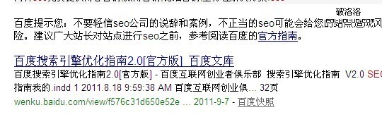 相信很多人都看到了吧,第一名和第二名變成這個了,而且首頁有5個百度的產品,直接把以前挺牛的網站都擠出首頁,出了個百度搜索引擎指南2.0,教站長們做百度優化的一些技巧和該注意的地方,而且專門還出了一欄警告站長門站著別被我們SEO所欺騙,NND,百度難道想趕盡殺絕,還真是狠哪,我想了一下午的時間,分析了一些百度做這個的原因,大家看看有沒異議: