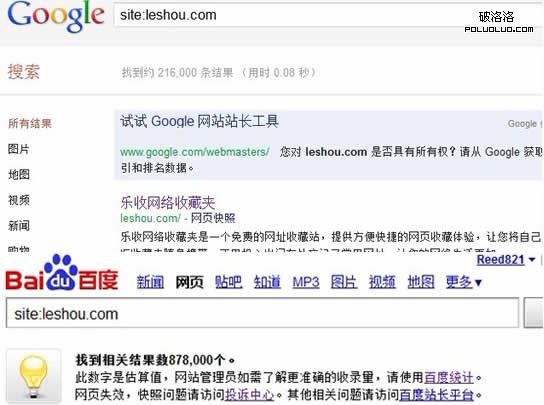 SITE一下。百度收錄近88萬條、Google收錄近22萬條,