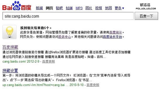 在來看看利用百度收藏做SEO提高權重是否可行,要提高自身網站權重,首先對方的權重要好,先來看看百度對自家百度收藏的收錄情況: