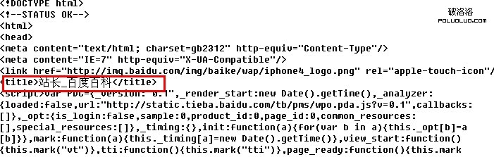 我們以“站長”這個關鍵詞為例,我們查看畢業設計的百度百科詞條頁面的源代碼,如下圖所示,我們可以發現與傳統的站點的信息有點不同。我們可以看到標題為“站長_百度百科”。使用這種格式的標題我們可以看出,百度對與“_”的青睐。同時我們還可以發現一般我們站點必備的描述和keywords在百科中被忽略掉了。我們可以看出搜索引擎的趨勢是降低對這兩個標簽的權重。