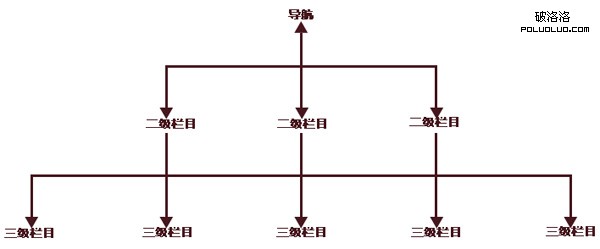 1.結構清楚:我們在做網站之前都會先為網站的欄目布局好,從導航到導航下級欄目再到下級欄目這樣來。這是我們網站欄目的樹形結構如下圖: