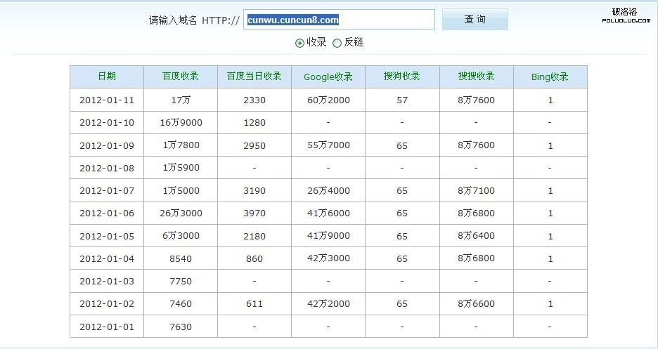 上圖我們可以看出收錄大幅增加,然後大幅減少。據筆者觀察,實際的收錄量還是在76頁,沒有什麼多出來的內容。而且大量的重復頁面被收錄,影響其他頁面的收錄。我們都知道蜘蛛抓取頁面的能力是有限的,我們重復的頁面被收錄,其他頁面被收錄的概率就減小了。而搜索引擎如果只是刪除掉重復的頁面還只算是警告,若是被K站,那就後悔莫及了。