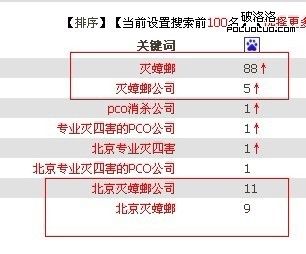 最後,還是說一下,網站的關鍵詞重要的不是去大量發垃圾外鏈,而是要去做一些高質量的外鏈或者錨文本!才能按照一個月的計劃把網站優化上去,排名不重要,重要的是後期的轉化!所以說外鏈也不重要,重要的是要有質量的外鏈數,才能有真排名,不想看到網站排名像升降機一樣徘徊,就好好去理解吧!或者直接搜索一下“滅蟑螂公司”去看看那個網站是筆者優化的,順便看看裡面的結構,分享一下網站一個月的排名情況圖片: