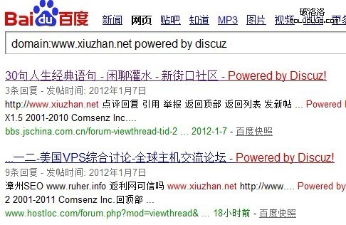 如圖所示,我們需要先找一個有一定百度權重的網站,對其進行外鏈分析細分,只找出論壇類型的外鏈。國內的論壇通常是使用兩個程序搭建的:discuz 和 phpwind,而且搭建過程中,並沒有對論壇的模版進行更改,這樣就直接造成了一個後果,貼子標題中帶有dz和pw的版權信息如:powered by discuz 、Powered by phpwind。