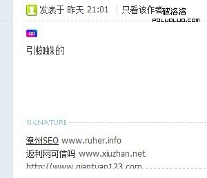 我們進入上圖的第一個論壇,並且查找剛才搜索的域名,馬上就能看到這個鏈接是在簽名位置的,也就是說,這個論壇的這個簽名為這個網站帶來了一個有效的外鏈。不過這邊我們可以看到,這個鏈接只是單純的文本,所以這個外鏈只能說是較一般的外鏈。