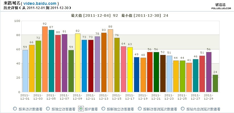 通過這種方式進入網站的人,由於有明確的目標,所以網站上相關的視頻點擊量會更高。這就提醒我們做好相關視頻的鏈接很重要。其次,一個視頻上傳後,它是長久有效的。拿筆者後台數據來看看就知道,以下是筆者上傳幾部視頻後,每天通過這些視頻進來的流量數據圖: