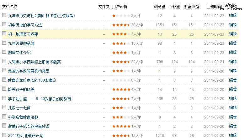 大家都知道文檔的排名很高,不管是百度文庫,還是豆丁網裡面的文檔。雖然筆者在這實驗期間,關鍵詞排名沒有提升,但流量卻上漲了。而他們不是從搜索引擎進來的,而是直接訪問的流量增加。良好的利用頁眉,在頁眉處放置網站的LOGO,對觀看者形成視覺沖擊。不要小看文檔被訪問的數量,來看看筆者上傳的文檔被訪問的個數就知道: