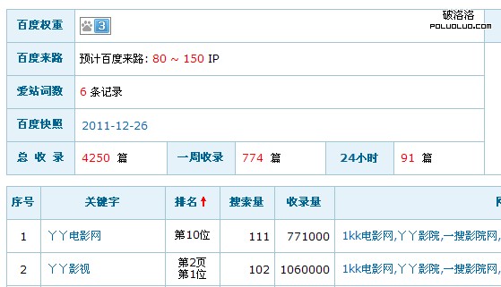 最後筆者總結一下,通過提高百度流量來提高網站權重確實是值得一試的,大家也看到筆者的小站中的流量跟權重的關系了。畢竟網站權重就是專門針對百度的,所以,要提高網站權重,自然就需要從百度中獲取更多更大的流量才行。本文由http://www.2012dy.com2012電影網獨家供稿,轉載請注明,謝謝!