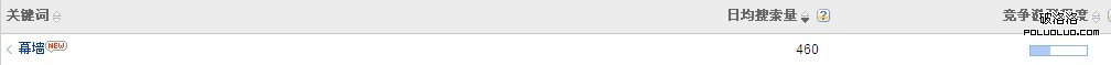 關於搜索量,百度競價的關鍵詞工具,提供了較為可靠的數據。我們以這些數據作為參考,看下搜索量和關注度的關系。我們以“幕牆”這個詞為例,在指數中查詢其關注度為440,這個數值與該行業較為生僻也頗為相符。而在關鍵詞工具中,我們將地域選擇為全部地域,以忽略地域對其的影響,由此查詢到“幕牆”的日均搜索量為460。
