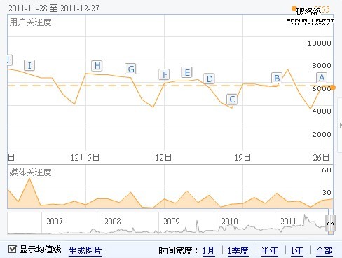 百度指數(以下簡稱指數)開發的初衷也許僅僅是定位於娛樂大眾的產品。但SEO賦予其特殊的意義,使其成為了SEOer確定關鍵詞不可或缺的工具。而我們最關注指數原因無疑是其“熱點趨勢圖”,它直觀的反映了某關鍵詞的用戶熱度(用戶關注度,以下簡稱關注度)及媒體熱度(媒體關注度)。那麼關注度是否就是用戶搜索量的真實體現呢?以關注度作為參考制定關鍵詞策略是否合理呢?