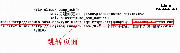 作為外鏈建設除了是為了吸引流量,更重要的是要傳遞權重。但是搜搜問答平台並不能傳遞權重。具體我們可以通過頁面的源代碼來查看。如下圖所示,在代碼中我們可以發現我們留下的鏈接其實是一個跳轉鏈接。而這種方式的鏈接我想大多數的站長都應該知道是並不能傳遞權重的。所以即使你這個頁面在搜搜問答平台做再多的鏈接也不能提高權重,提高排名的。