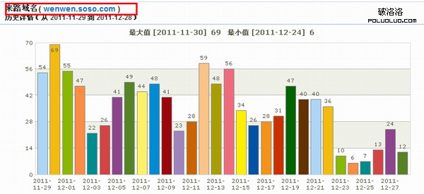 2:可以穩定的吸引到流量。因為搜搜問問可以留下內頁的鏈接,所以相對與百度知道更加容易吸引到點擊率。筆者剛在搜搜發布幾條鏈接之後,就從後台數據中發現了來自搜搜問答平台的流量。而且有穩定的增長的趨勢。如下圖所示(由於筆者的站點近期處於改版期間,內頁都暫時打不開,固從搜搜問答平台進入的流量有所減少)。