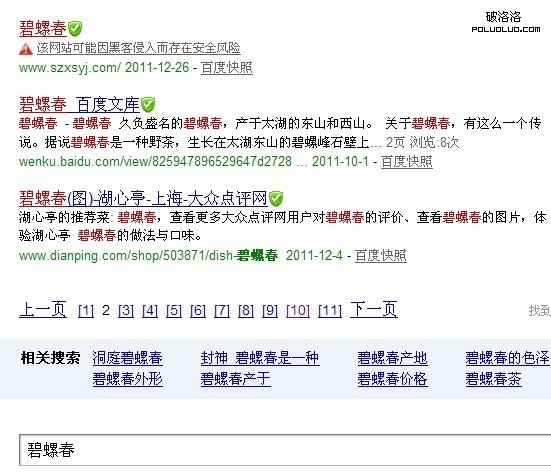 碧螺春這個詞的百度指數雖然也不是特別高,只有1000多,但這個站因為之前被百度懲罰過,出過很多問題,所以出現進入第二頁是有些不正常的,應該這個排名會很快下降的。經過分析,出現網站被攻擊排名迅速提升的原因有以下幾點: