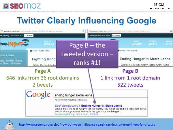 而針對這個論述,他們也做了一個實驗,來證實Twitter對於Google排名的幫助:
