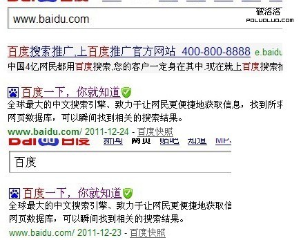 那麼我們看完真正的大站百度自己的快照時間也是不一樣的,同時你可以找其他的一些站點測試,有兩個快照的網站還有很多的。顯然,出現兩個快照時間並不是網站不正常的表現,如果是這樣,百度自己的站都不正常了。