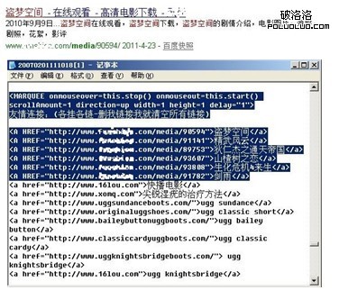 第二個案例是一個利用Tag聚合頁面聚合內容來實現搜索引擎排名從而吸引流量的作弊犯法。這也教了我們一些Tag聚合的技巧。實際上Tag頁面在各類網站中是非常常見的,Tag的聚合能力確實能夠很好的方便讀者,但圖示手法實際原理是通過拆分關鍵詞,然後根據拆分後的關鍵詞進行或匹配,匹配精度自然不能達到非常優質。更重要的是,通過牽強的分詞關系構造出的內容,很多與關鍵詞並沒有精准的對應關系,在這種以關鍵詞優化為目的的Tag頁面上,確實找不到用戶體驗。此類作弊方法墨明棋妙認為是比較難完全通過程序檢測的,由程序自動判別相關度而後提取嫌疑頁面而後人工判別可能是一種有效的處理方法,同時也可通過用戶點擊行為來進行一定量的監控。
