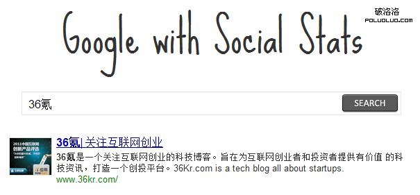 Google一邊不斷優化自身搜索結果排名,一邊嘗試著增強搜索結果的社交屬性。於是,我們看到了下面的變化——搜索結果中出現了+1按鈕,不僅是鏈接,連圖片也可以被+1;Google+也在向搜索結果滲透,點擊圈人按鈕,你可以把搜索結果的內容作者加到自己的Google+圈子中。在社交因素對搜索結果排名影響日趨增強的今天,有沒有合適的工具去觀察社交因素對搜索結果排名的影響呢?答案是肯定的,科技博客Digital Inspiration的作者Amit Agarwal就試著打造了一個完全由社會化分享熱門程度決定結果排名的搜索引擎——Google with Social Stats。
