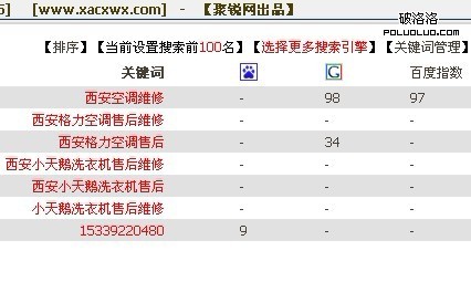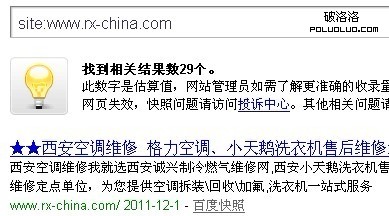 11月接一個外地單,新站,做家電維修類的網站優化;關鍵詞如:西安空調維修、西安格力空調售後維修等。除了西安空調維修有點指數外,其它都是沒有指數,也沒太大竟爭。但是客人比較急,問一定要在網站建設後一二周內看到效果,問我能不能做。我肯定的說不能,但是盡量吧。最後客人還是相信了我,接下了這個優化單。