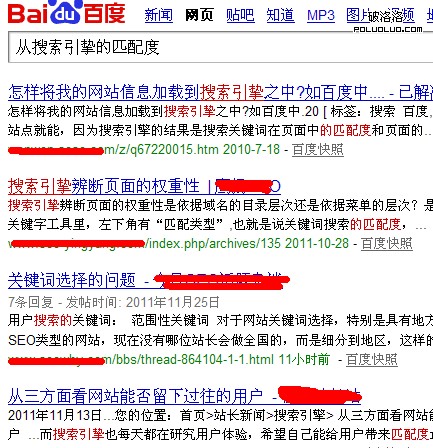 上面這圖是一個高度匹配的效果,如果用戶搜索某關鍵詞時,而搜索引摯數據庫中不存在與之完全匹配的信息,自然就退而求次,利用高度匹配的方法問用戶自己想要的信息是否與出現的結果有關。所以站長在優化內容標題時,不清楚用戶的完全搜索關鍵詞,那麼可以通過適當的在標題中穿插搜索量高的關鍵詞,以達到可以利用搜索結果的高度匹配的效果來實現自己的網站頁面獲得排名。當然對於高度匹配獲得好排名的同時還需要網站的權重要相當的高,畢竟權重不同而匹配度又不完全,這樣的頁面很獲得好排名的。