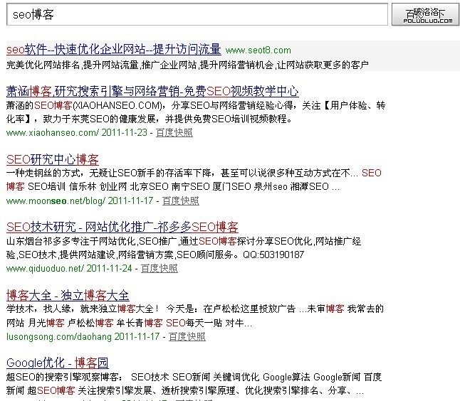 從上面seo博客排名前五的網站,可以發現它們權重都是非常不錯的網站,這就只要它們網站title或者描述裡面出現這個seo或者博客兩個關鍵詞,它們就會自動匹配,從而產生關鍵詞排名,如果還能在外鏈發布幾個seo博客這個錨文本鏈接,當然效果會更加明顯。