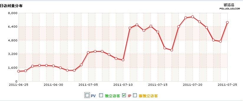 做seo的時間久了,就會想著接單,這是一個我曾經接過的一個網站。我是6月末接過做這個網站的,經過一個月多點的時間,網站後台IP流量如下圖: