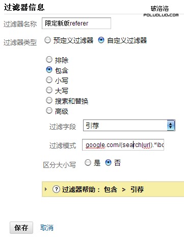 過濾模式裡面的字符是 google.com/(search|url).*\bcd=\d*