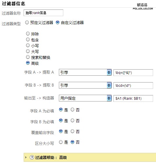 這邊再說一下《網站分析和SEO的結合–Google Analytics小技巧》這篇文章中沒有提到的細節,也是藍鯨在他的查排名教程中沒有提到的細節,就是過濾器的排序問題。