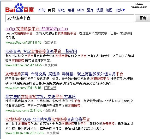 1、友情鏈接交換平台:現在友情鏈接交換平台多如牛毛,隨便在百度搜索下“友情鏈接平台”就出來一大堆: