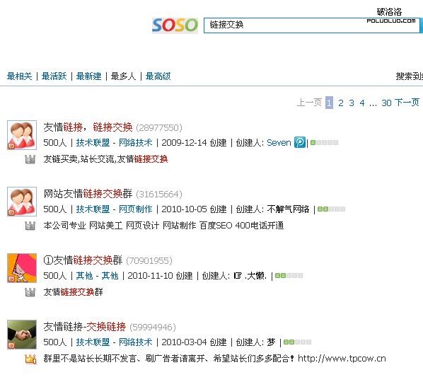 通過加入這些QQ群,可以在裡面發自己的網址,是不會被T的哈,嘿嘿,還可以順帶給你帶點鳥流量,一下子跟幾百個站長溝通換鏈接,效果更好哦!