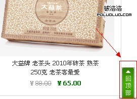 當我們浏覽一個網頁時,一般都是從上往下看的,當我們看到中間或者最底部時,想重新回到最頂部時,就得用鼠標滾動或者點擊拉動滾動條,當有的滾動條設計的模糊時,會點擊不到,這時候很多用戶或許就會選擇跳出;這時候如果我們添加一個“回到頂部”按鈕,就可以大大的方便用戶的浏覽,現在新浪微博就用這種小按鈕,因此我們商城也合理運用這點來方便用戶的浏覽: