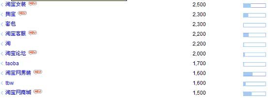 在關鍵詞推薦裡面,搜索“淘寶”,上圖中倒數第三個“taob” 明顯是屬於誤輸入,這個詞每天誤輸入搜索次數達5800次,“taob” ,習慣性的去搜索頁看看: