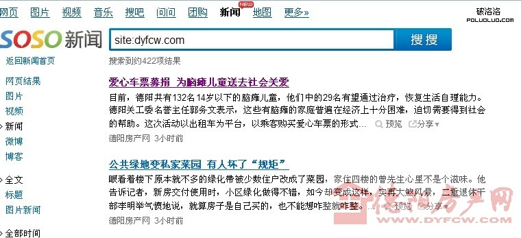 4.記得向SOSO提交新聞源。SOSO新聞源申請地址:http://news.soso.com/newsjoin.html。如何你的站點符合SOSO的要求,他們會在24小時收錄你的站點。查詢時可以在新聞欄目在用“SITE:域名”進行查詢。