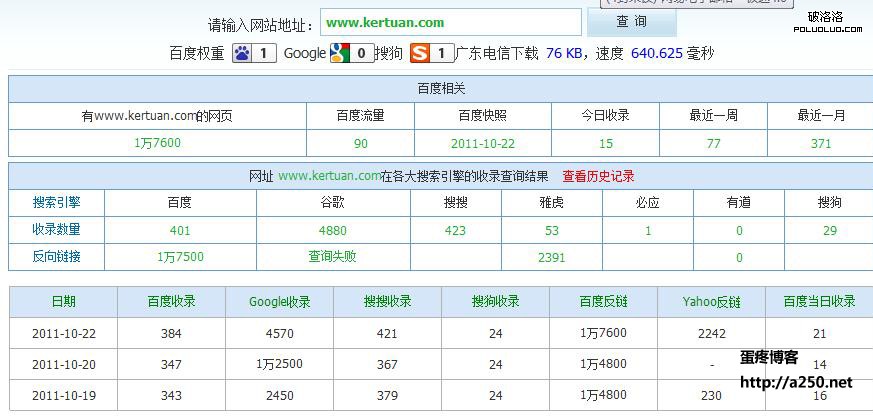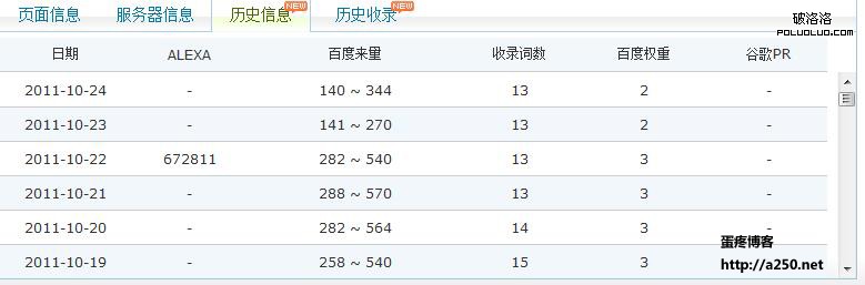 如上圖,2011-10-22百度權重是3,2011-10-23百度權重是2,這就是所謂的被降權。如果是老SEOer對這個百度權重理解是這樣的,百度權重其實並不是百度官方承認的,而是各大站長查詢網站的百度權重查詢這個功能是根據“按來訪數”、“指數大小”、“關鍵詞反向鏈接”等等方面來反應權重。那麼問題來了:先看圖
