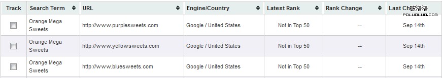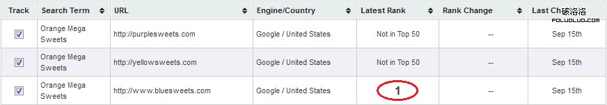 9月16號排名情況(下圖),bluesweets.com仍然在第一,其它兩個站仍然沒有出現在前50名。