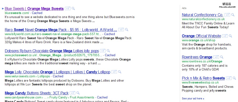 purplesweets.com的鏈接錨文本全部用的“Orange Mega Sweets”,也就是本次試驗用的關鍵詞。