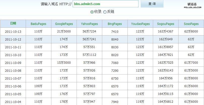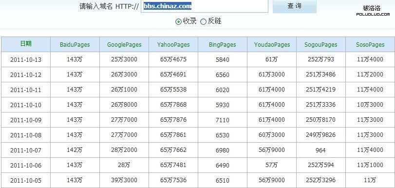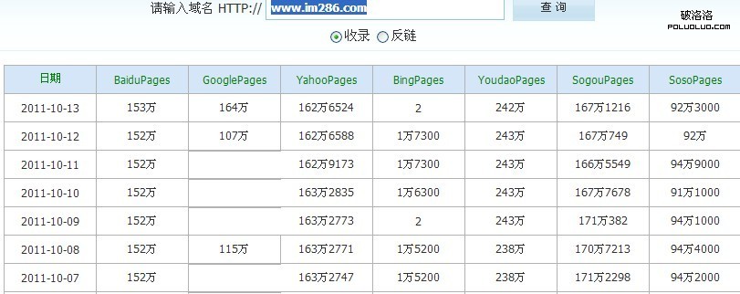 落伍者站長站時間段內收錄情況