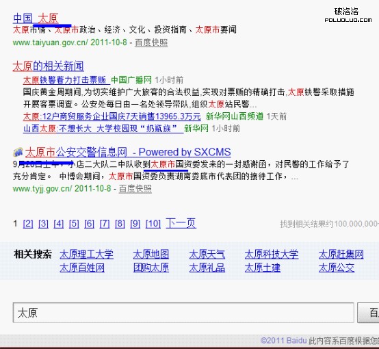 比如我們搜索太原,我們會發現太原與太原市都進行了飄紅。