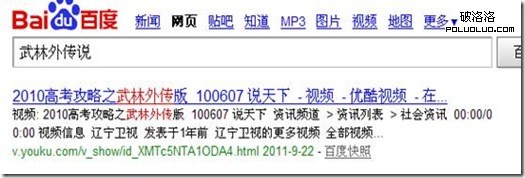 簡單點說就是從左到右進行分詞,例如百度:武林外傳說,武林外傳與傳說是兩個不同的詞,根據用戶搜索習慣與詞庫分析百度會返回一個正向最大的匹配,也就是分詞為:武林外傳 說。搜索結果如下圖: