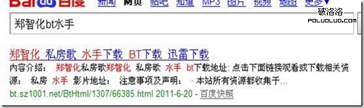 那麼如果搜索內容中包含同時中文與英文百度是如何處理的呢?百度會將英文做為單獨的一塊來處理,然後英文前後的詞也做為一個單獨的塊。試搜索:鄭智化bt下載,結果如下: