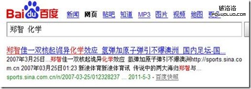如果用戶根據自已的意願在搜索的關健詞的時候有加上空格,標點,那麼搜索引擎會優化按用戶的行為進行查詢,這個應該很好理解!例如:百度搜索 鄭智化水手 與搜索 鄭智化 水手,所返回的結果會是不一樣的!可能這個例子還並不直觀,舉一個更直觀的例子,分別搜索:鄭智化 學 和 鄭智 化學。搜索結果分別如下圖: