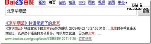 而有一種特殊的情況,就是關健詞前後組合內容被認為粘性相差不大,而搜索結果輥也同時包含這兩組詞的話,百度會進行正反向同時進行分詞匹配,如搜索關健詞:北京華煙雲,返回結果如下: