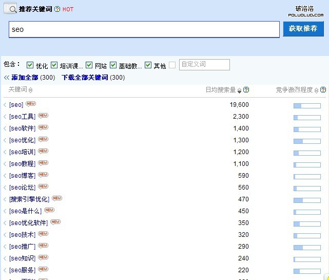 首先想強調一點:百度推廣後台和谷歌AdWords工具雖然都是挖掘關鍵詞工具,但是因為這兩個搜索引擎的熱榜關鍵詞不同,使用這兩個搜索引擎的人的搜索習慣也不一樣,所以同一個關鍵詞所挖掘出來的長尾關鍵詞也不同,所以羽毛哥建議大家兩者配合使用為好。