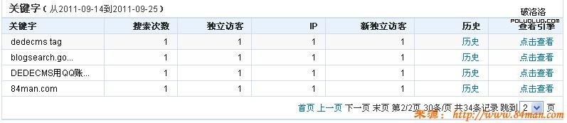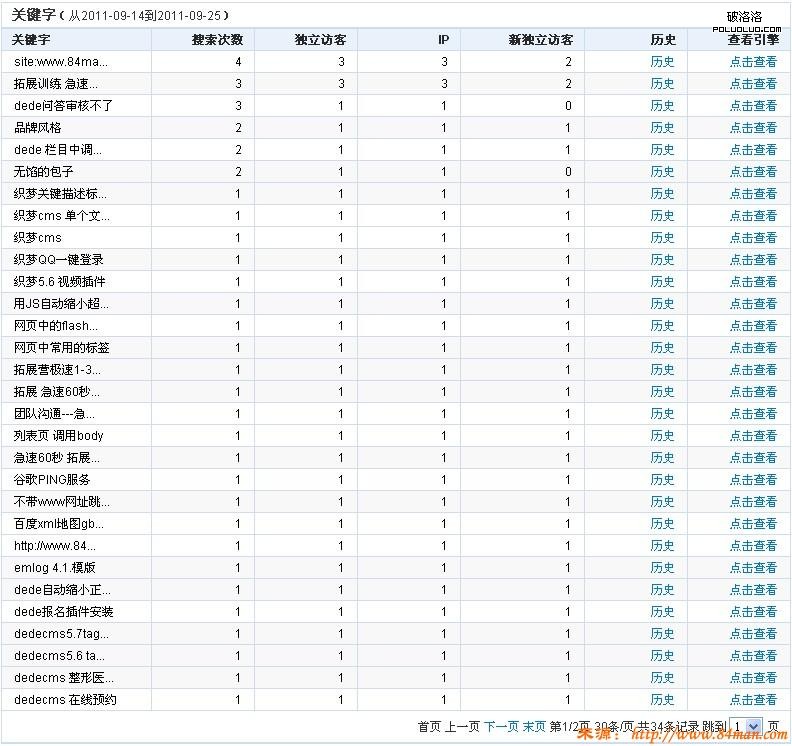 好了就說到這裡,最後再上幾張圖,是網站上線後從搜索引擎過來的關鍵詞列表圖,統計為站長統計