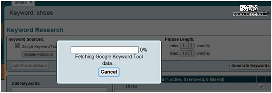 5. 點擊Generate Keywords,然後稍等一會,軟件會讀取關鍵詞列表