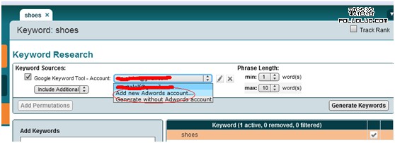 4. 輸入您Google Adwords的賬號,Google Adwords的賬號是可以免費注冊的,然後選中這個賬號。